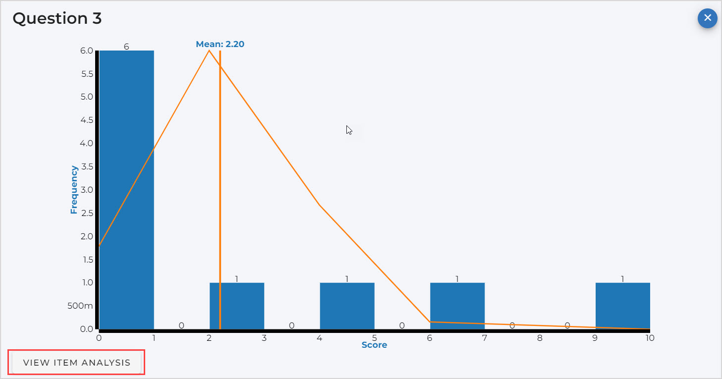 In the Histogram dialog, click View Item Analysis to view the statistics for each multiple choice question: