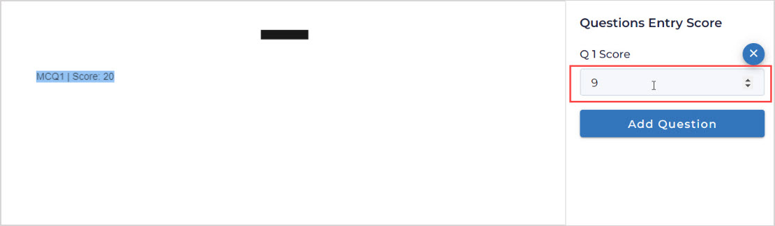 Enter the total score for all bubblesheet questions in the Questions Entry Score pane (Example — enter 9 for the score if you have 9 questions, each worth 1 point).