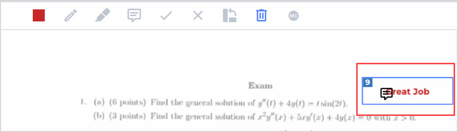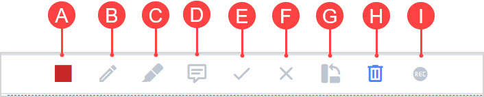 Each button in the markup toolbar allow graders to add annotations or symbols onto student submissions in the Preview area: