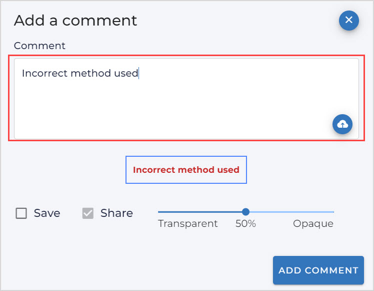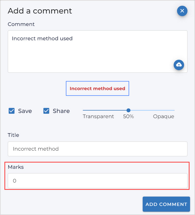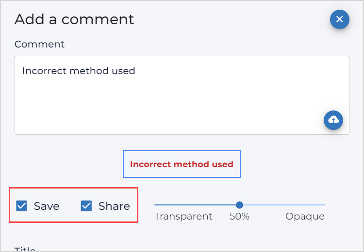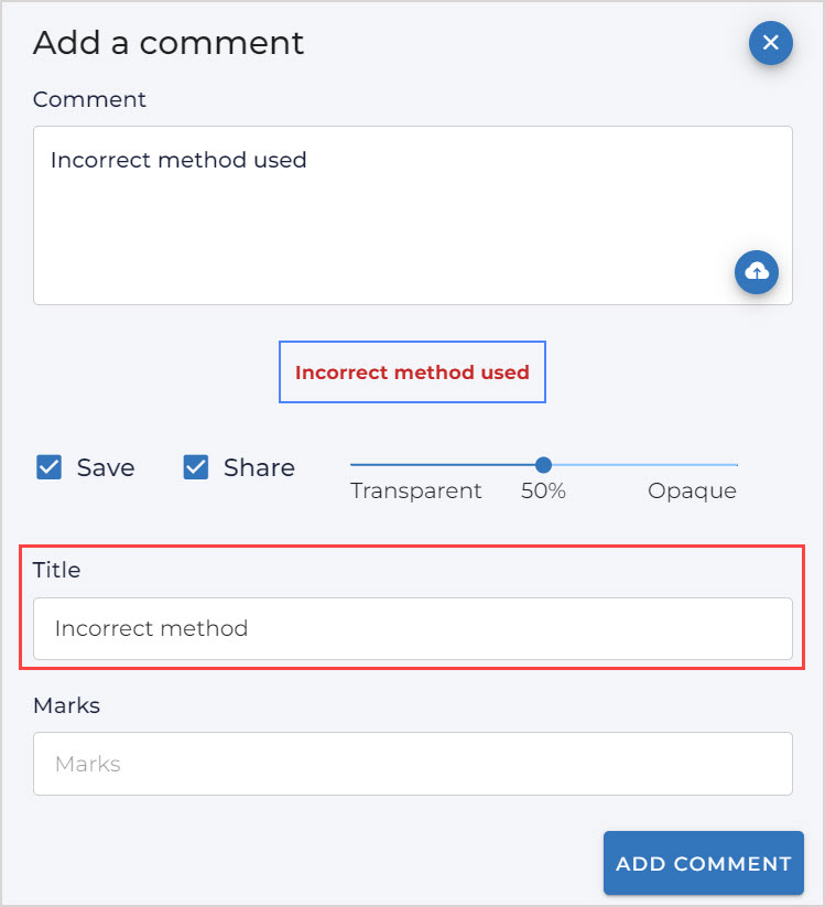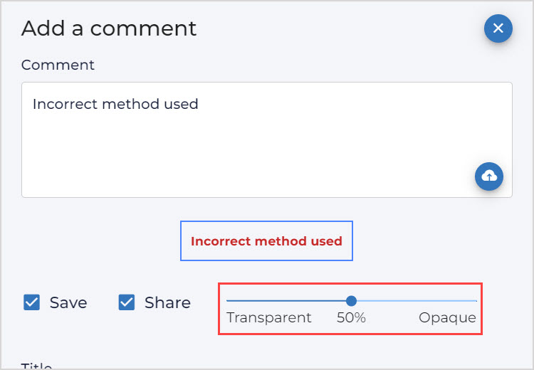 TIP: You can use the slider between Transparent and Opaque to adjust the transparency of the comment when visible on the preview of a student's submission.