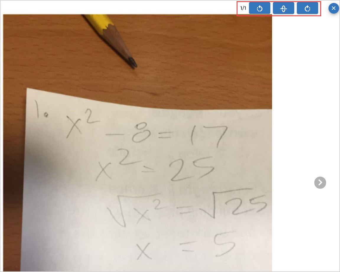 You can change the orientation of uploaded files or remove an uploaded file at any time before submission of the assessment.