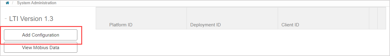 Click View Möbius Data in the LTI Version 1.3 pane.