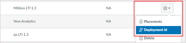 IMPORTANT: To create links to Möbius your Canvas account must have access to use the same app configuration for all courses. For multiple Möbius LTI tools, the Canvas setup process must be run each time to obtain a separate Client ID and Deployment ID for each tool.