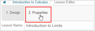 1.  Click the 2. Properties tab to continue creating your lesson by defining the lesson's properties.