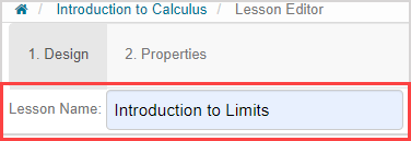 TIP: The lesson's name is displayed to your students on the Class Homepage. Ensure that your lesson's name is unique, informative, and easily identifiable.