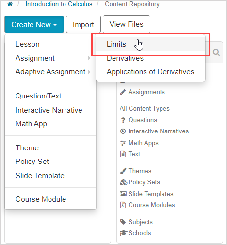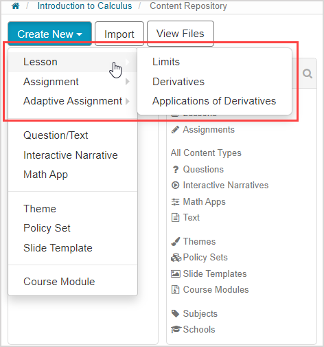 TIP: Check out Import lesson content and Delete lesson content for more details on bringing in content that already exists in your Content Repository.