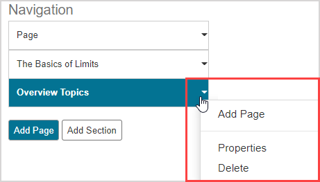 1.  Click Add Section in the Navigation pane to add a heading to categorize pages in the lesson.