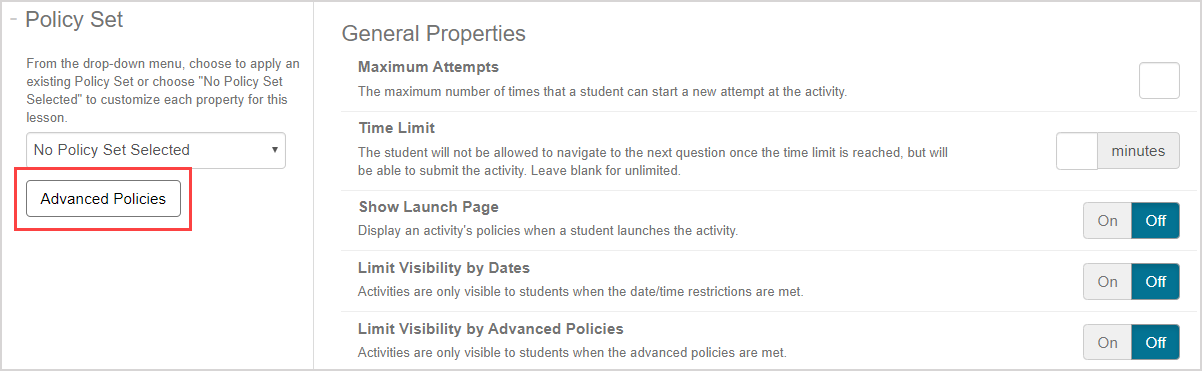 1. Click Advanced Policies to set the Advanced Policies for your lesson.