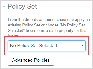 1. To fully customize the properties for this lesson (instead of applying an existing Policy Set), select No Policy Set Selected from the drop-down list.