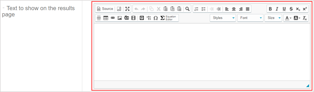 1. Insert text in the Text to show on the results page text box to display on the lesson results page if it is being created with the ability to submit for grading.
