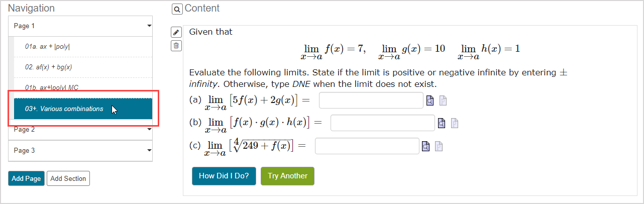 1. Click the page in the Navigation pane that you want to delete content from to display the page's content block components.