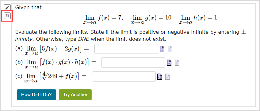 1. Click the delete icon.