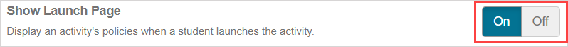 The launch page acts as a landing page when a student launches an activity to inform them of any important activity properties and access conditions relating to the activity.