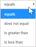 (B) Select the conditional scenario from the drop-down list. Example — is greater than