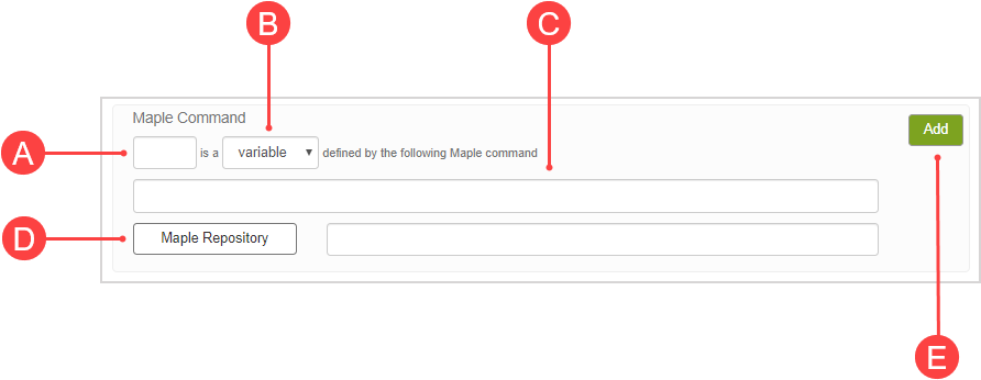 (Optional) You can also link to a Maple repository when generating random variables if you've created custom Maple commands. (D) Click Maple Repository to import and link to a Maple repository from the Class File Manager to reference your commands.