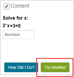 If you're previewing your algorithmic question from the Lesson Editor, click Try Another to see the algorithmic variable replaced with new values each time the question is viewed.
