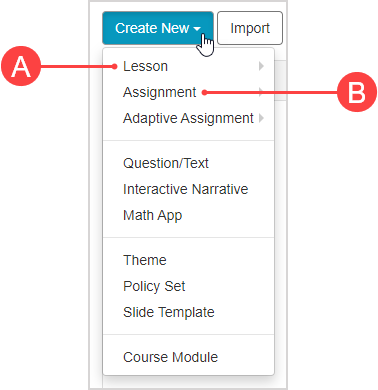 TIP: Check out Create a lesson or Create an assignment for full details on creating a new activity.