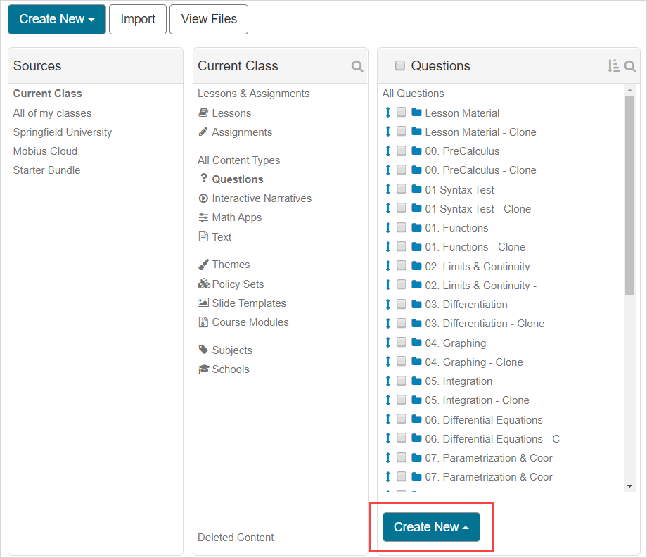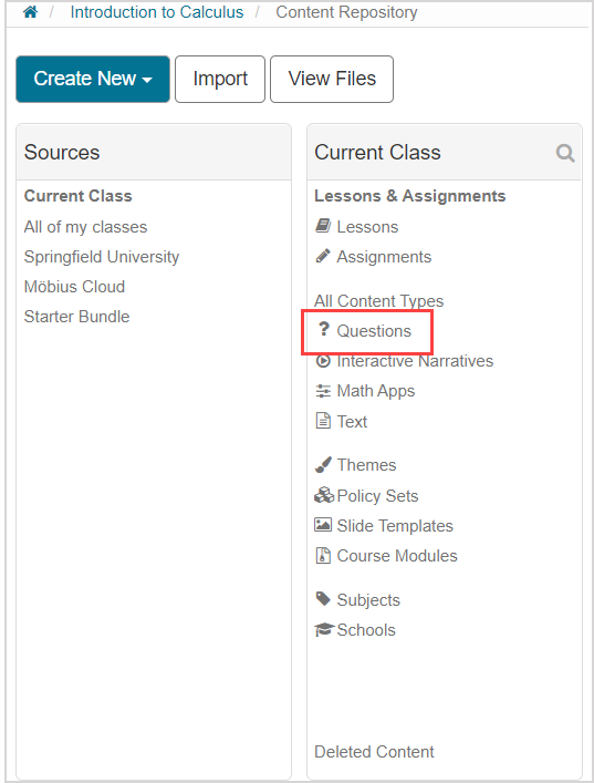 The Question Editor is used to author all question types. Check out View available question types to learn about the different types of questions that you can author in Möbius.
