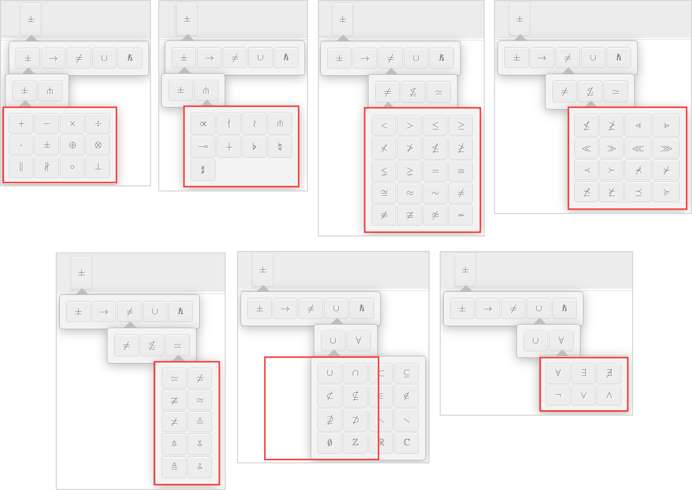 1. Click on a palette from the selected palette group to reveal the available symbols, functions, and operators.