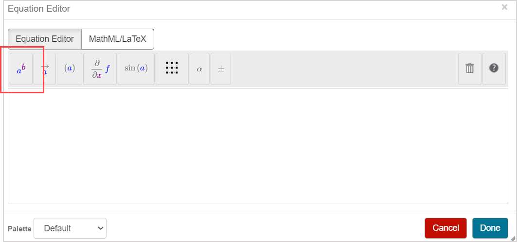 1. Click the MathML/LaTeX tab within the Equation Editor.