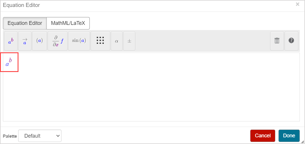 1. Click Done to insert your formatted expression or equation into the content being authored.