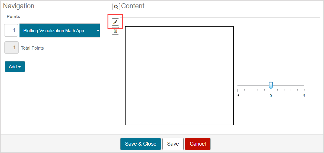 1. With the imported Math App selected, click the Edit content icon within the Lesson Editor.