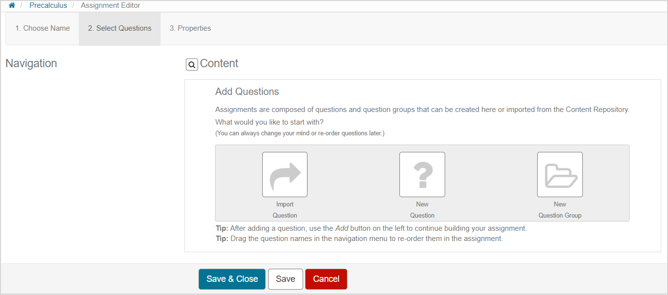 1. Click Save & Close to return to the Assignment Editor to continue working on the rest of your assignment.