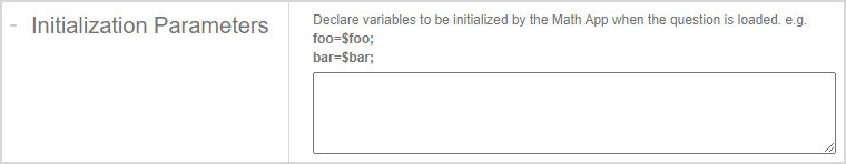 TIP: Initialization parameters must first be defined in the Math App's Maple worksheet within the startup code using the InitParams procedure. The InitParams procedure must be defined within the Actions module. The InitParams procedure must then be exported in order to be referenced by Möbius. Check out Use Math App authoring guidelines.
