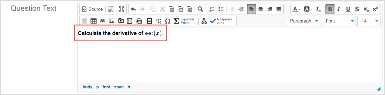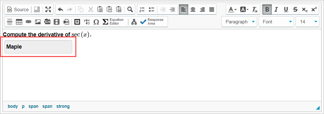 TIP: Check out Use the Visual Editor for details on how to use this toolbar to the fullest to control the visual appearance of your Maple-graded question text.