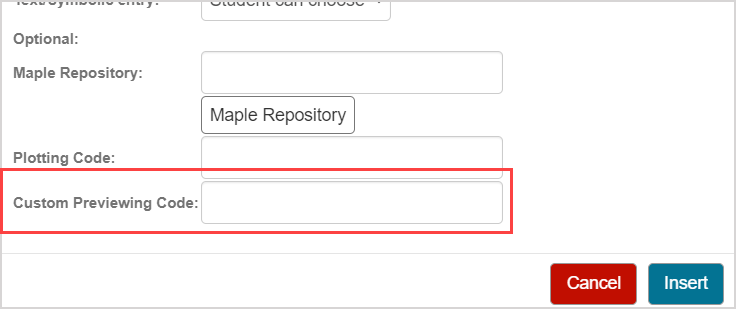 TIP: Check out the Example: Custom previewing code section in the Author a formula (Maple-graded) sub-type to see how to use this custom previewing code.