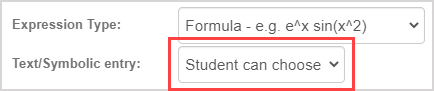Select the student entry mode from the Text/Symbolic entry drop-down list.