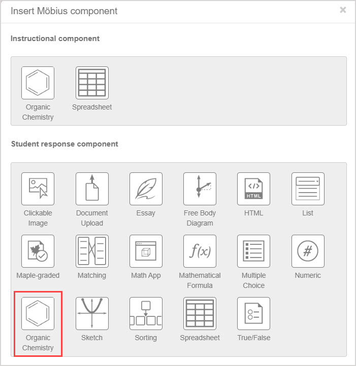 Organic chemistry sketch questions are helpful if you want the student to draw a chemical diagram without having to leave Möbius, or without using a document upload question.