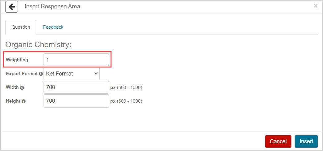 TIP: The weight of the component can be any integer greater than 0, and is calculated proportionate to the total of all weights across the question. Example — A question with two components could have the first weighted as 2, and the second weighted as 4. This means that the second component will be worth twice as much as the first when calculating the total grade for the question.