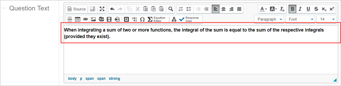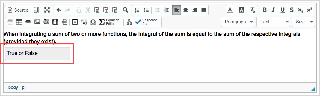TIP: Check out Use the Visual Editor for details on how to use this toolbar to the fullest to control the visual appearance of your true or false question text.