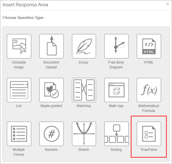 TIP: You can include an algorithm in your true or false question! Check out Author an algorithmic question.