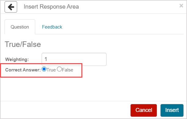 Select whether the question statement from step 1 is True or False (False is the default selection).
