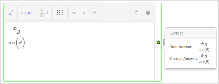 NOTE: The correct answer is displayed in proper symbolic math using MathML when displayed to the student.