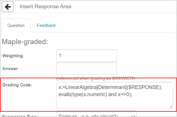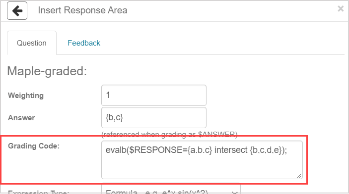 TIP: Check out Choose a Maple-graded question sub-type for a comparison of the two Maple-graded question sub-types.