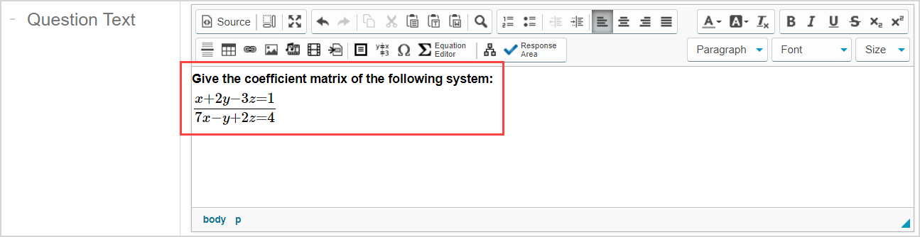 NOTE: Subscripts are also available when authoring a chemistry question as a mathematical formula question. Check out Author a chemical equation sub-type.