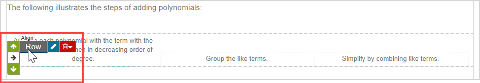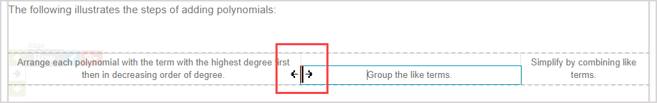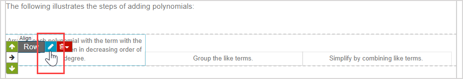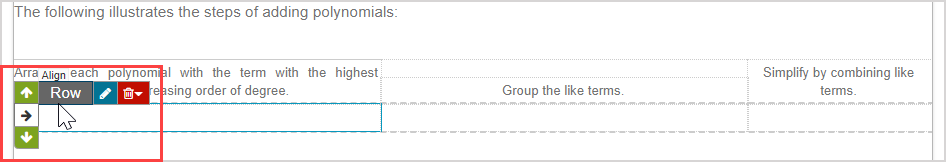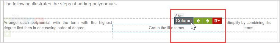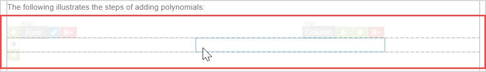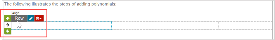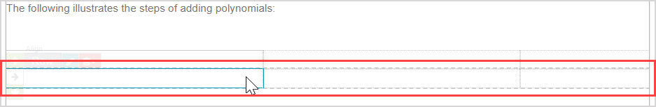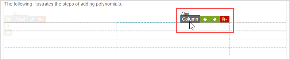 After inserting an invisible table using the Align Environment icon, text and media can be inputted into the individual cells of the invisible table and the content and table dimensions can be edited.