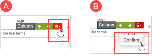 Hover your cursor over the upper right side of the column that you want to delete. This reveals the column toolbar.