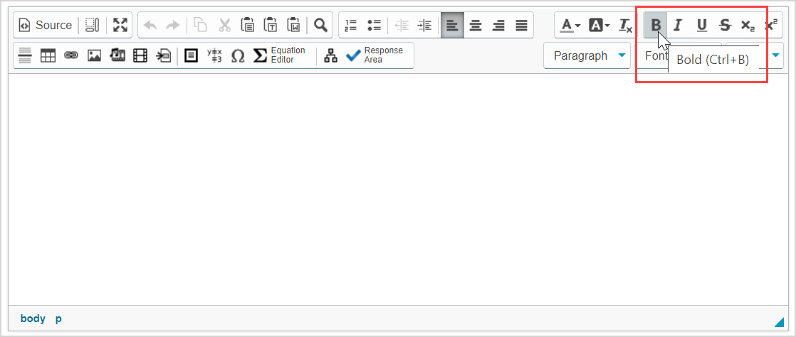 ![]() | Formatting Styles | N/A | Choose the type of block element to be applied from the drop-down list. |