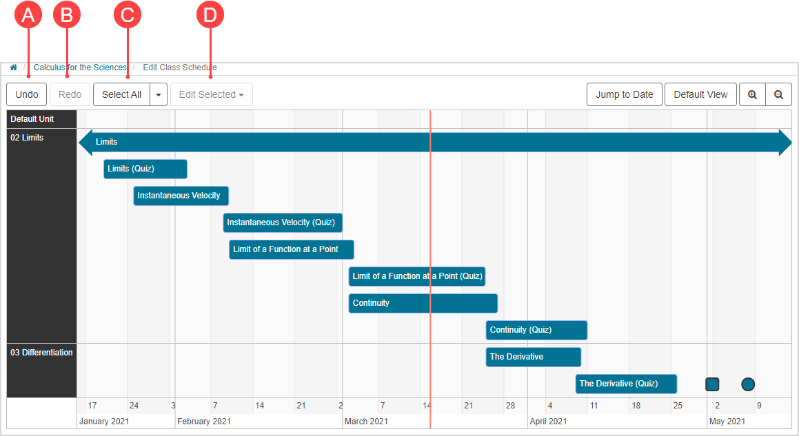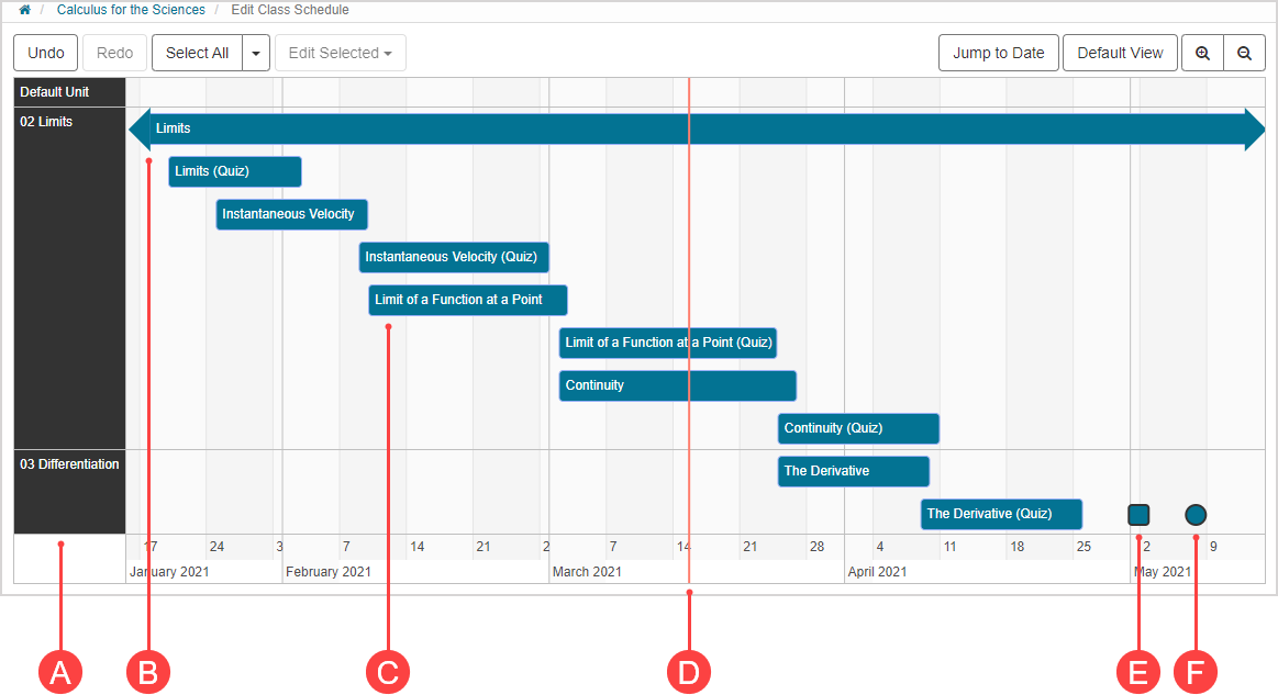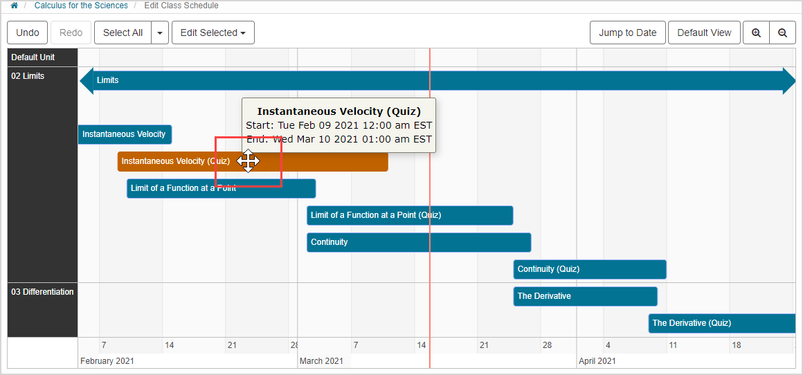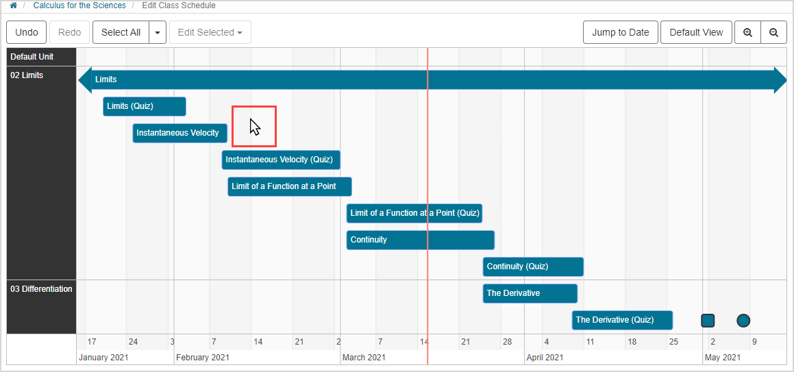 NOTE: The order of your units and activities on the Class Schedule matches how they are arranged in the Content Repository. To modify this order, they must be re-ordered in the Content Repository. Check out Reorder content.