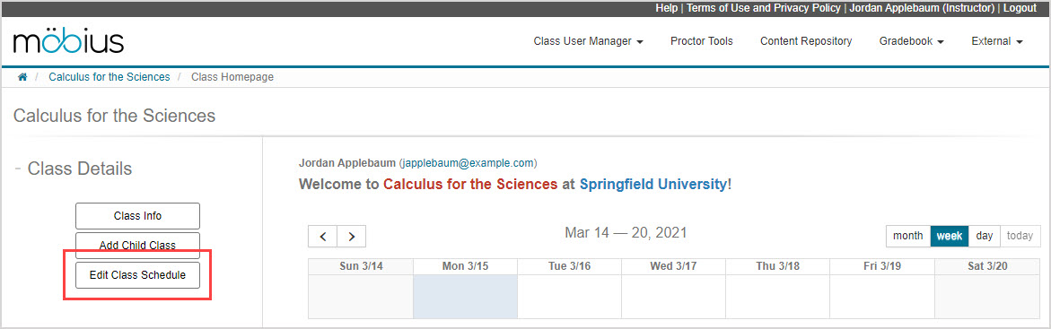 Click Edit Class Schedule on the Class Homepage.