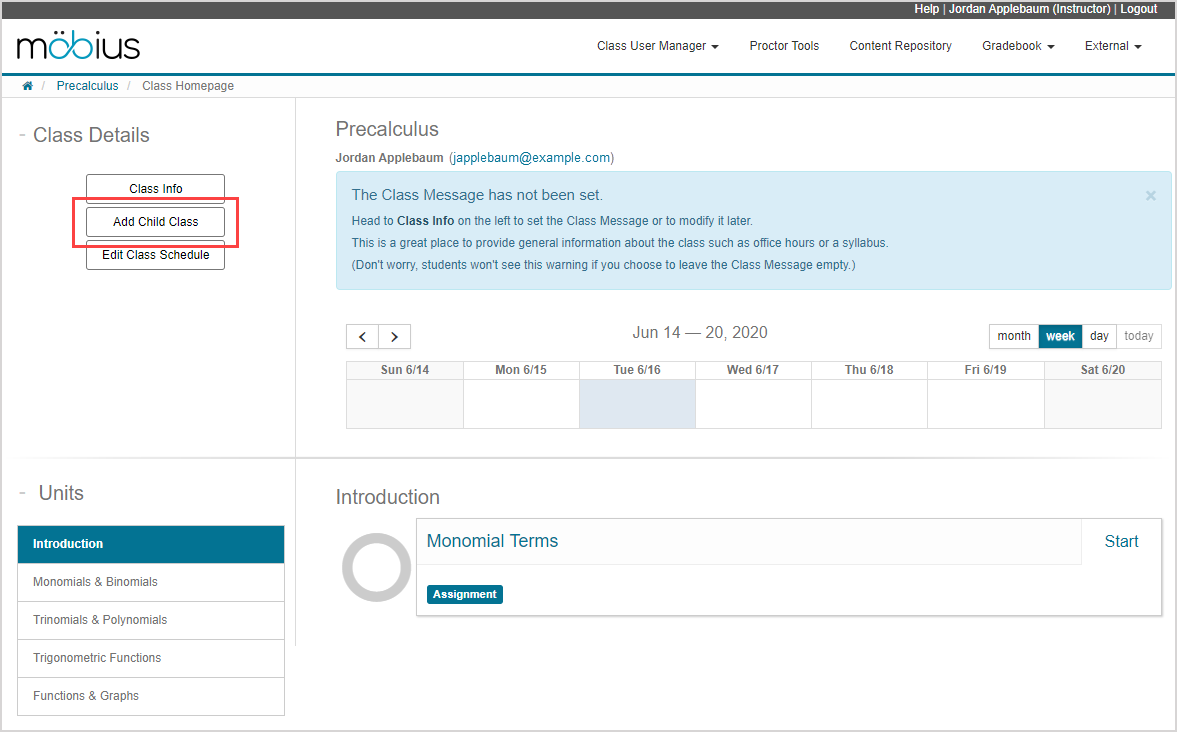 TIP: Check out Enroll users into my class to learn about enrolling students into your new child class.