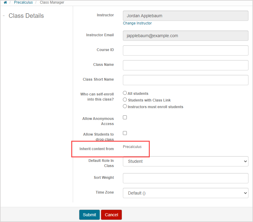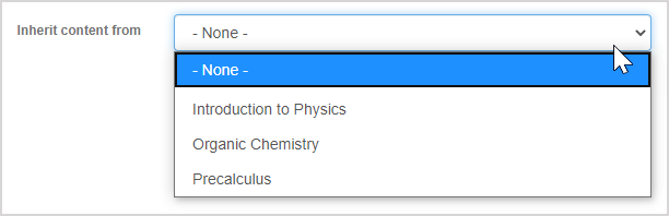 NOTE: When the child class inherits the parent class's Content Repository, all content and properties of the content are also inherited (Example — activities in the parent class with the activity visibility setting of hidden will be inherited as hidden by the child class).