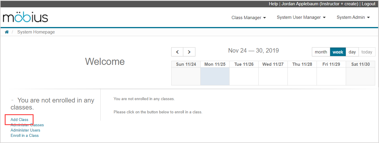 Click Add Class from your empty System Homepage.