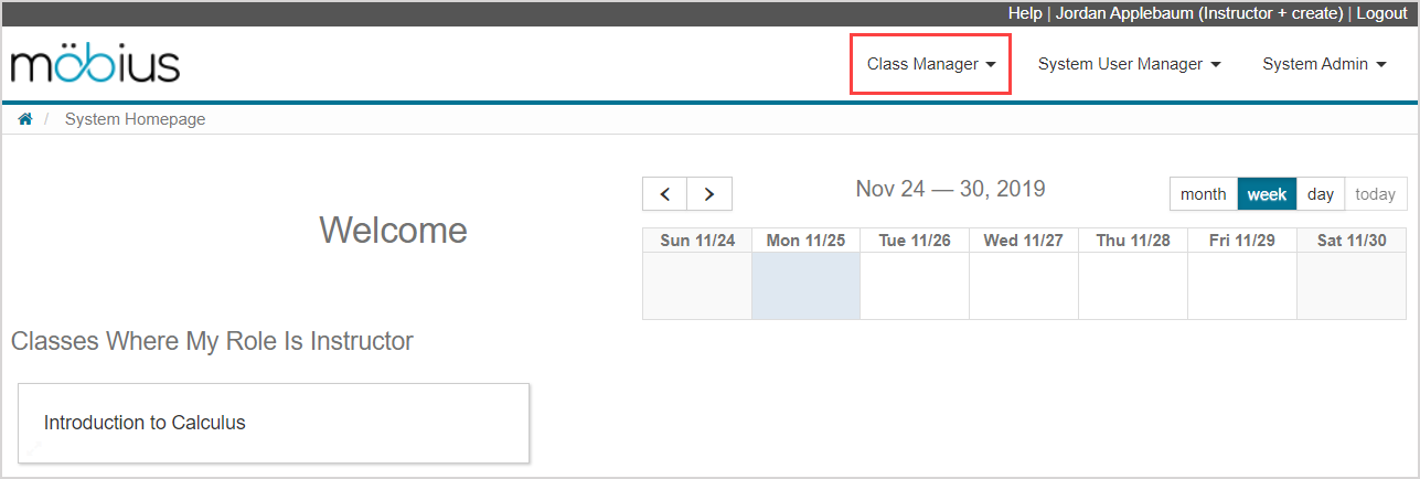 Click Class Manager on the System Homepage.