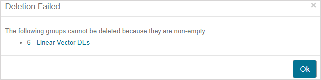NOTE: Clicking to delete a non-empty group will display an error stating that the group to be deleted is non-empty.