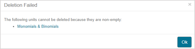 NOTE: Clicking to delete a non-empty unit will display an error stating that the unit to be deleted is non-empty.